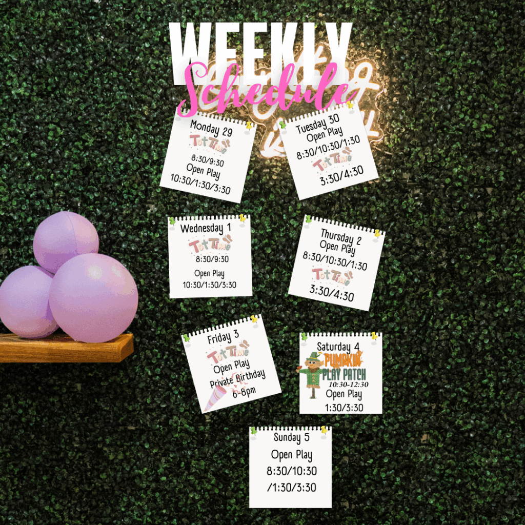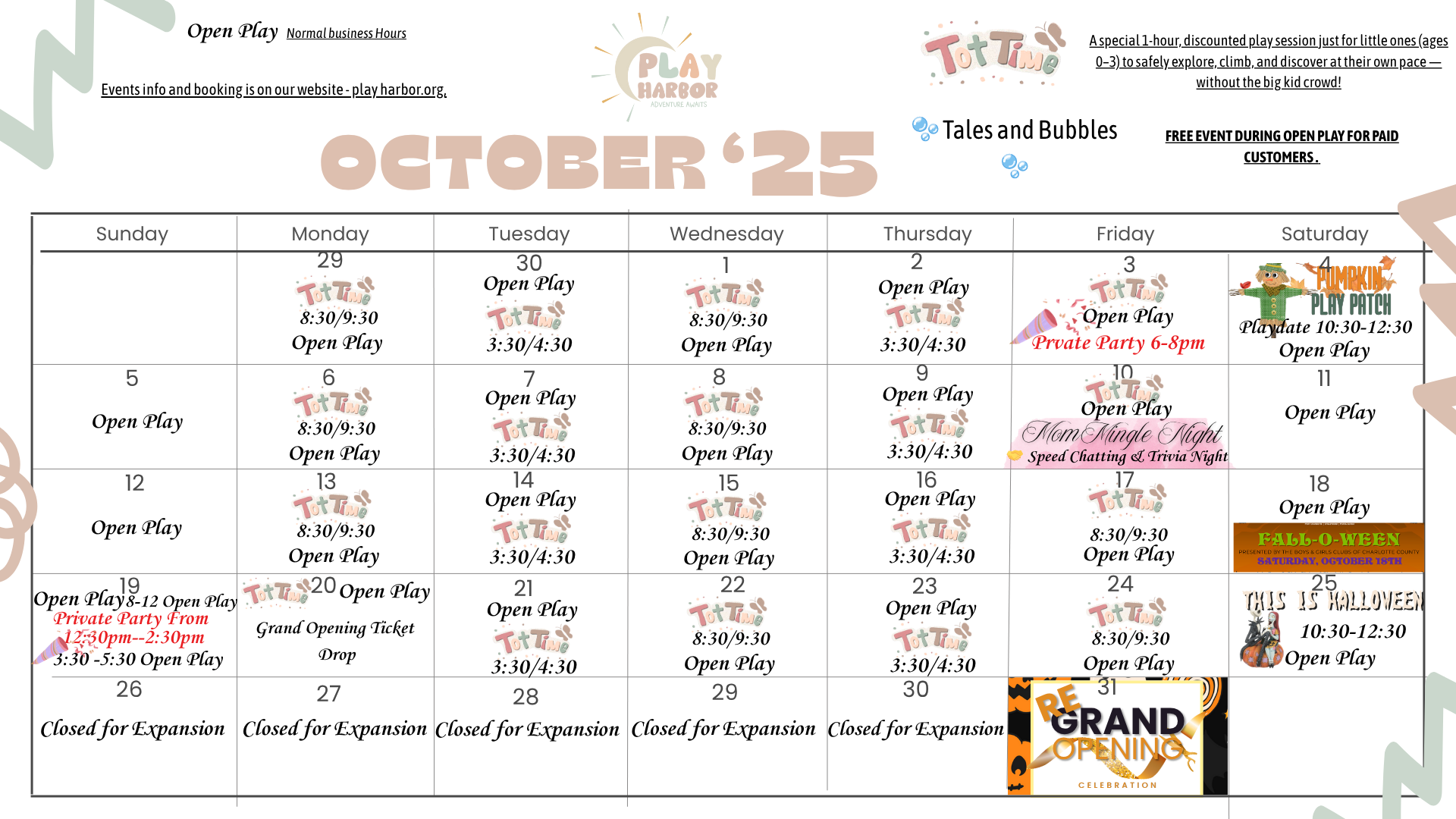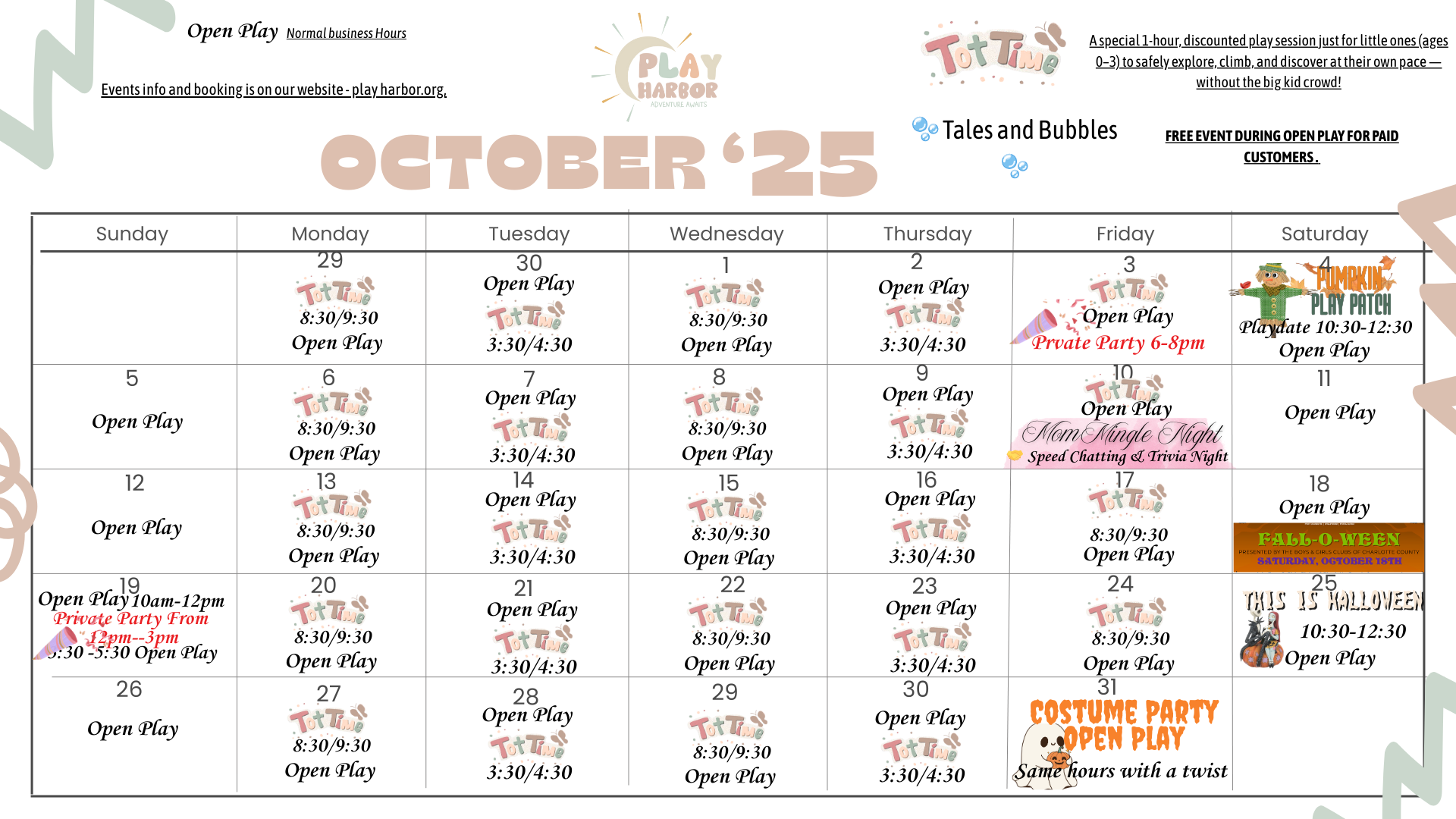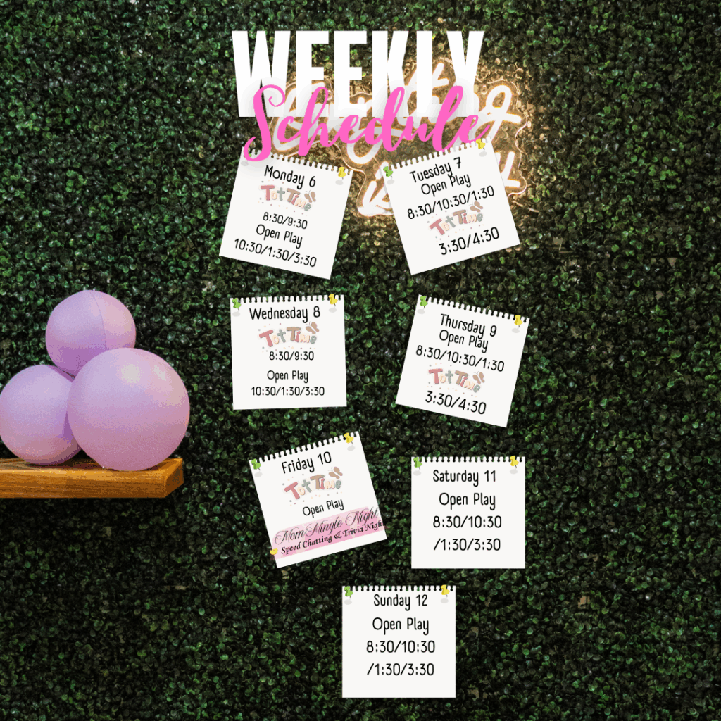Please note that while it is rare, if you book a play session more than 2 weeks in advance on a Saturday morning from 10:00 AM -12:00 PM, your reservation may be subject to change if a private party books the same time slot.