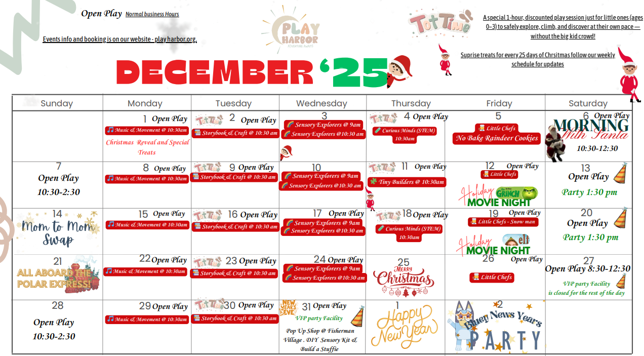 Play Harbor is where parents and caregivers can come and recharge and connect with other individuals in the same stage of life, while their children are completely entertained in a safe, clean and imaginative play space.